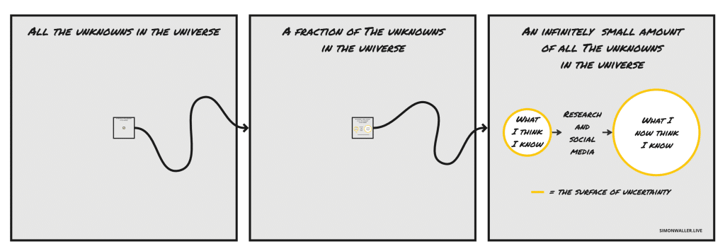 I appreciate this may come across as a little philosophical, but it provides insights that are also incredibly useful. It means the very act of trying to solve for uncertainty by doing more research may actually exacerbate the very feeling of uncertainty that you’re trying to overcome*.
