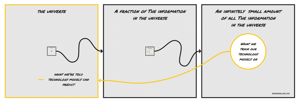 The problem with this is that we’re being trained to believe that certainty is possible, and in doing so there is the very real risk that our tolerance for uncertainty becomes diminished. The technologists will tell you that these tools are getting better and that one day they will be able to accurately predict everything with superhuman ability, and although there is evidence that these tools are getting better, the idea that uncertainty can be eliminated all together is, well, bullshit.